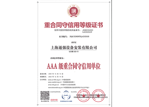 上海通強設備安裝有限公司注冊資金2000萬元,資產(chǎn)總量為100000萬元的專業(yè)設備安裝公司,公司專業(yè)從事工業(yè)與民用建筑的設備安裝、非標設備的制作、鋼結(jié)構(gòu)制作安裝、中央空調(diào)系統(tǒng)的安裝,水電及管道的安裝。經(jīng)過20多年艱苦創(chuàng)業(yè)現(xiàn)已成為一個具有國家二級安裝資質(zhì),獲得上海市“重合同,守信用”的施工單位。